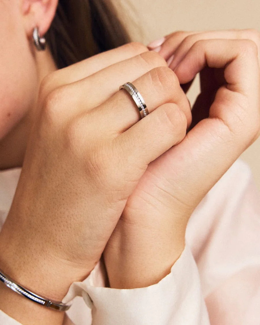 Classic Design: The Josefin ring features a finely decorated upper part adorned with clear cubic zirconia stones, creating a look that’s both elegant and versatile.