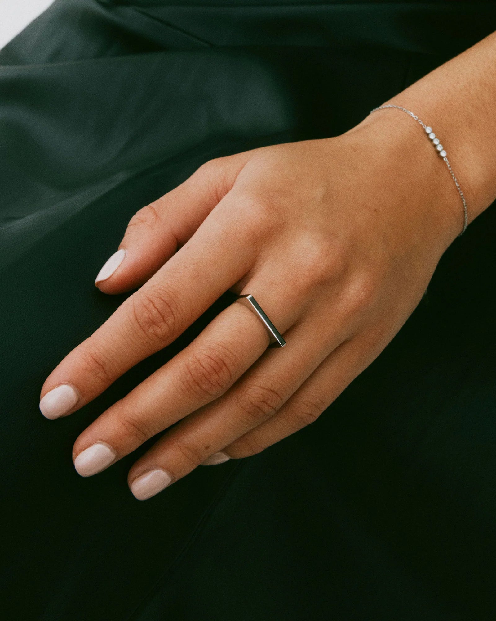 The Twiggy line is a sophisticated and modern example of what’s known as 'quiet luxury'. Confident, minimalist, and stylish, perfect for both everyday wear and special occasions. The rings in the line exude bold city chic, and can be mixed and matched to suit your style and the occasion. You can stack them in a mix of 14K gold plating and shiny stainless steel, with or without stones. Seen here without stones, in shiny stainless steel.