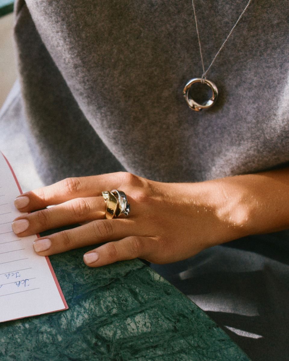 Endless movement is the theme of Helix, which is based on a round design that twists around itself. In the ring, seen here in 14K gold plating, the beautiful twisted shape sits beautifully on the hand. Match with the line's studs, hoops or necklaces for a striking look.
