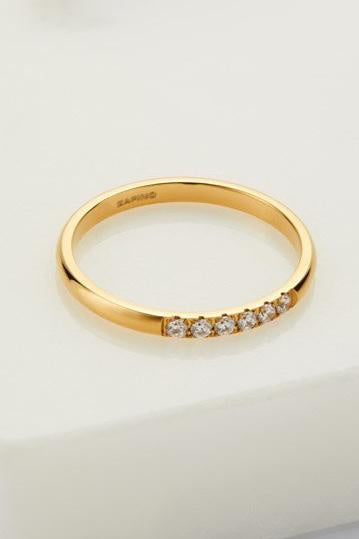The Ella Ring combines delicate elegance with modern versatility, featuring a fine band adorned with six small, shimmering crystals. Crafted from waterproof materials, this ring is designed for everyday wear while maintaining its brilliance. Perfect for stacking or wearing solo, the Ella Ring adds a subtle sparkle and timeless charm to any look, making it an essential piece for your jewellery collection. Made Nickel Free Hypoallergenic stainless steel metal 18k Gold Plated Waterproof