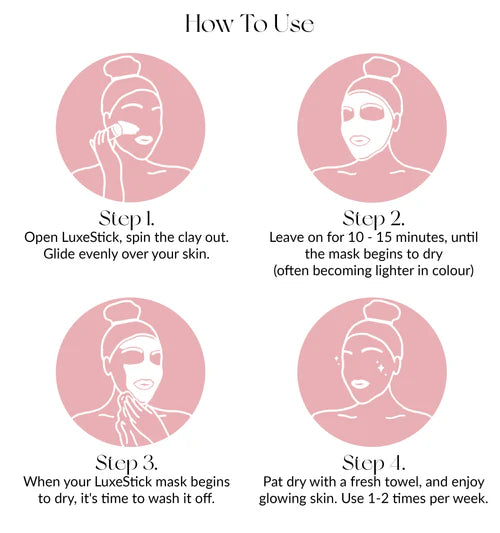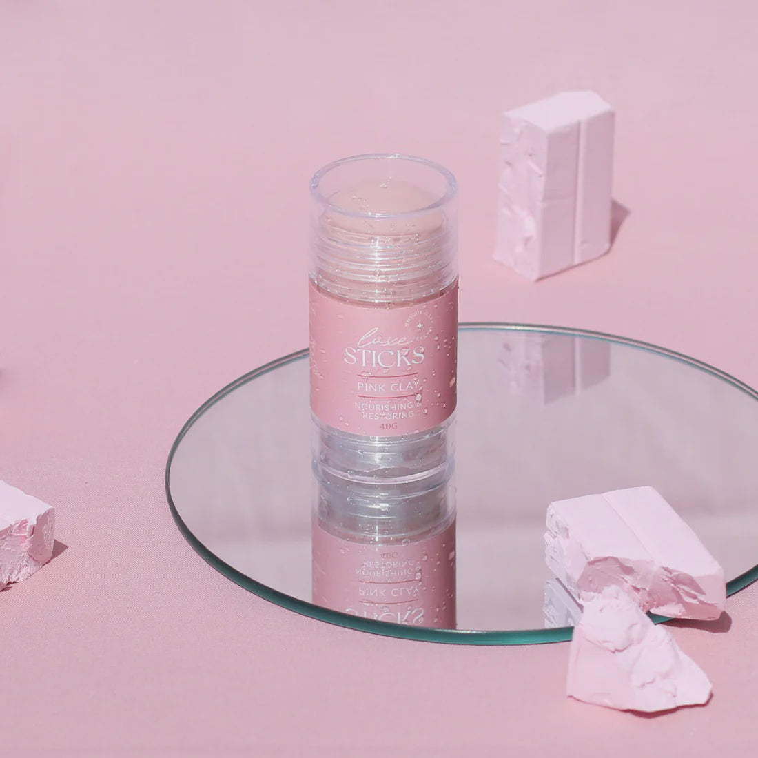 Our Pink Mineral Clay LuxeStick is an absolute go-to. Pink mineral clay nourishes and repairs the skin, absorbs the dirt on the facial skin, and deeply cleans the dirt in the pores.