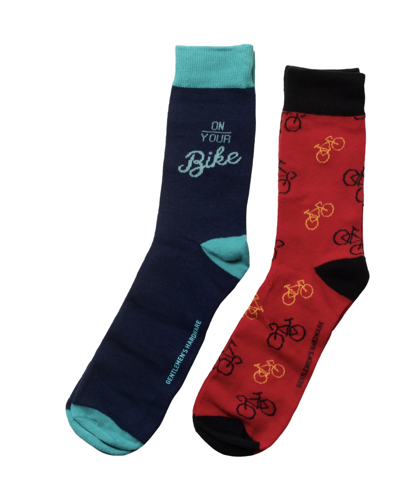 Give a practical gift for the bicycle enthusiast and pedaler in your life with the Set of 2 Bike Crew Socks from Gentlemen's Hardware. Have some fun with a pop of color for a casual ride or daily commute wearing this pack of two pairs of soft combed cotton socks. Enjoy these cycling socks while out for a ride or grinding at your 9-5.