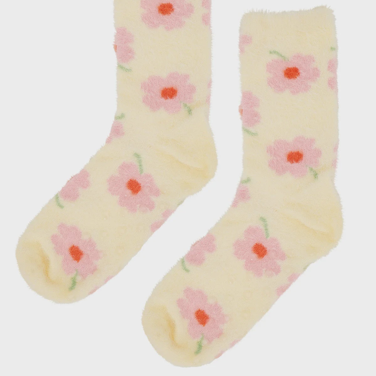 Socks Fuzzy Bedsocks - Flower Cream