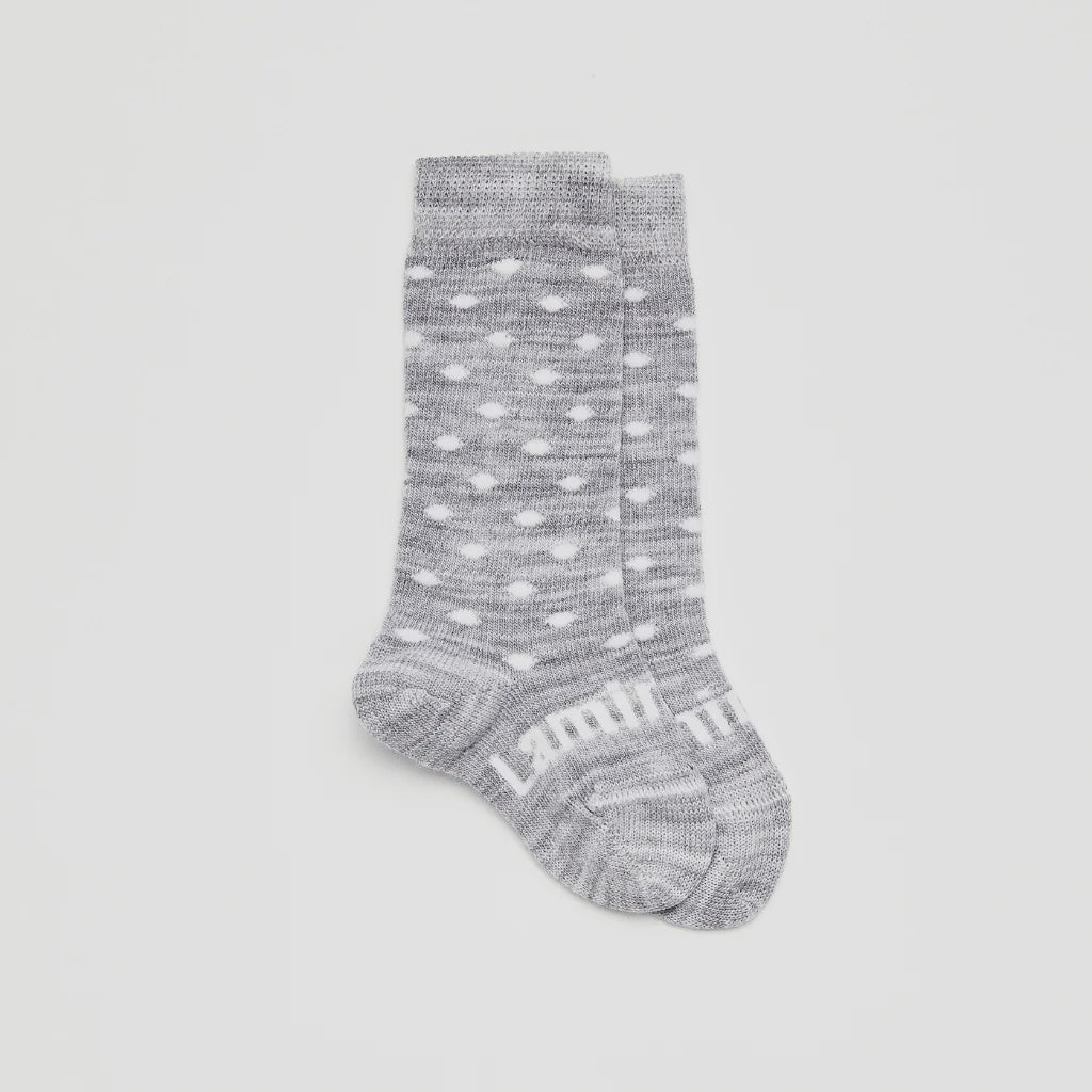 NEWBORN NATURAL - Snowflake -Light grey marle with natural spots merino knee high socks