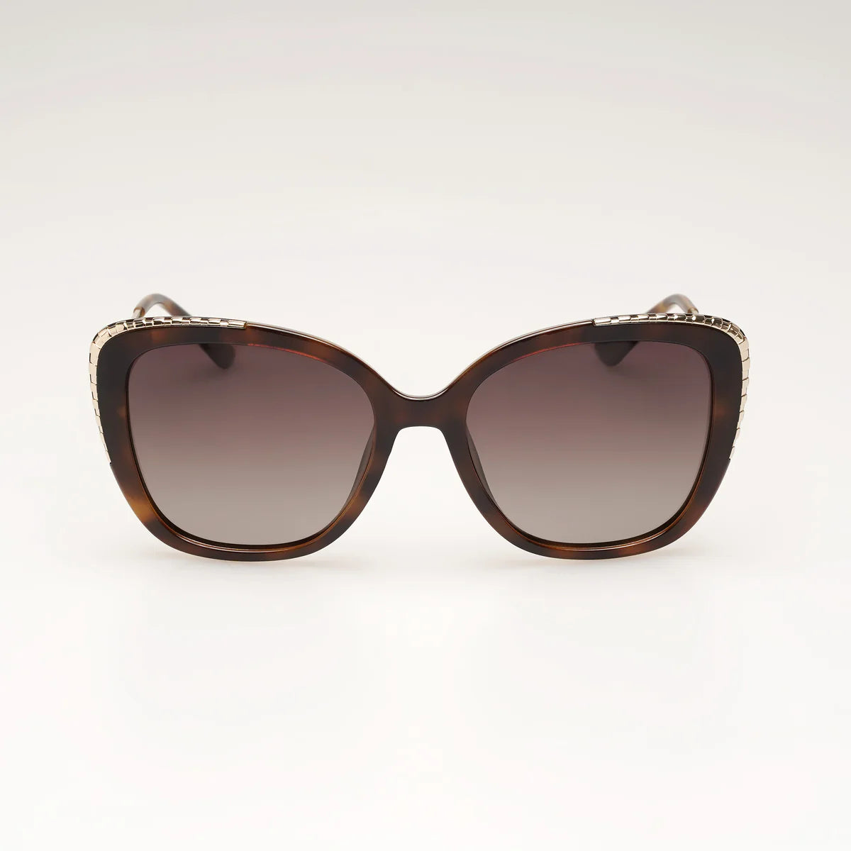 Her delicate gold arms seamlessly blend into brown temple tips, ensuring a comfortable and secure fit, while her polarised brown lens with 100% UV protection makes them perfect for any sunny day.