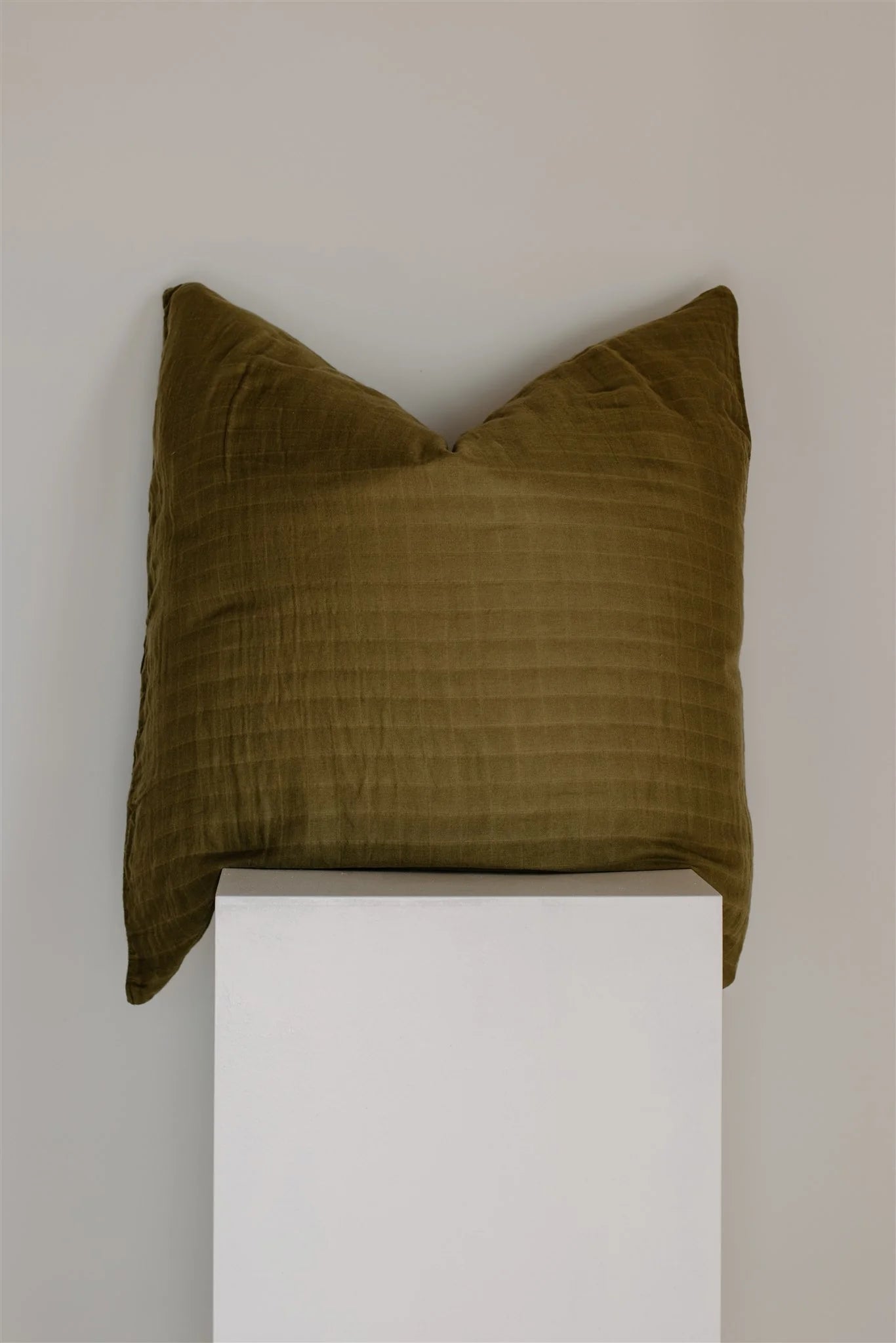 Indulge in the perfect blend of sophistication and comfort with our Organic Euro Pillowcase in Olive. This premium addition to your bedding provides an extra touch of luxury. Pair it with our Organic Muslin standard Pillowcases and Organic Muslin Throw Blanket for an elevated, elegant aesthetic.