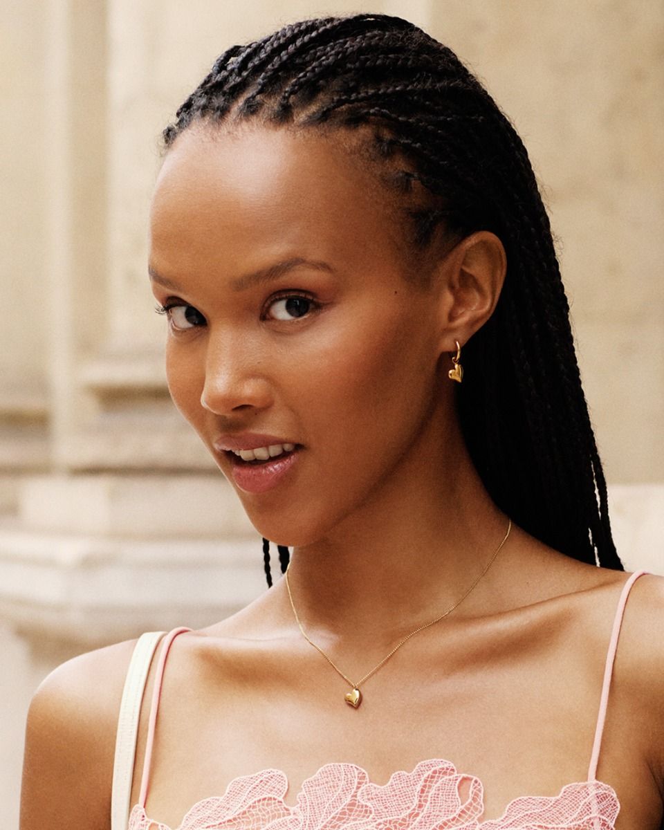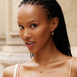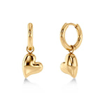 You'll find a playful and soft heart shape in the Amorina line. Seen here in hoops in 14K gold plating, with a removable heart charm, creating two earrings in one. Superbly easy to style, and perfect as a loving gift for someone you really cherish