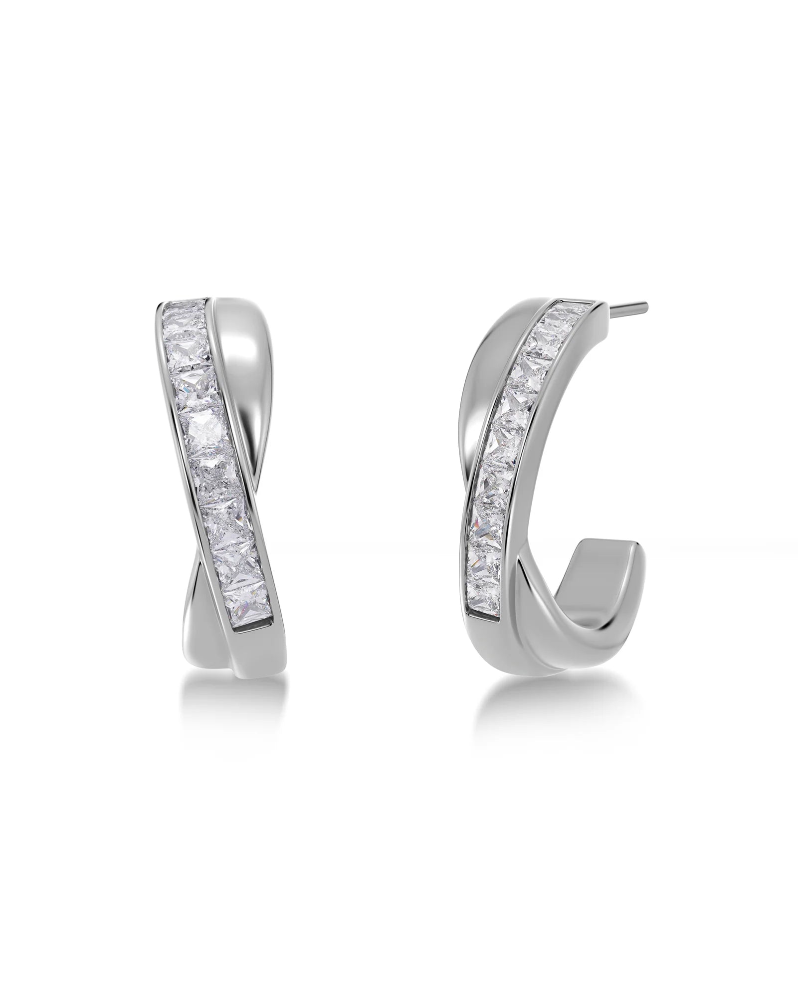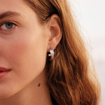 The classic Andorra line has a softer design thanks to its two rounded rails wrapped around each other; one with clear stones and the other without. Elegant larger creoles that suit everyone and make an ideal gift. Andorra Creoles Duo L can be seen here in shiny stainless steel.