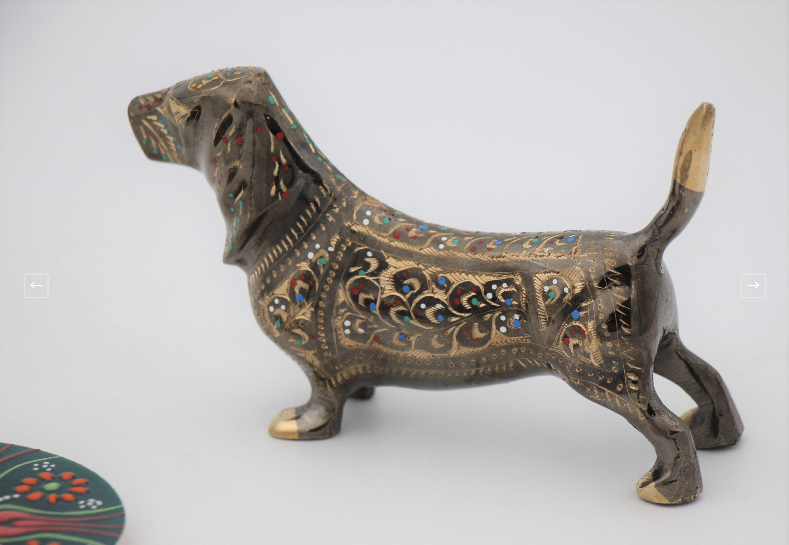 Unique hand crafted and hand etched brass dog, intricately hand crafted by the amazing artisans of the Indian Subcontinent! This amazing art has been handed down over the generations and you now can enjoy this age old tradition in your home.