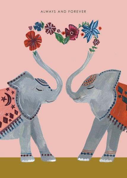Card-Elephant Floral Heart Designed by husband and wife team Simon & Nicola Hutchinson in North Yorkshire FSC approved high quality card and envelope from sustainable sources 175x125mm Printed in Australia