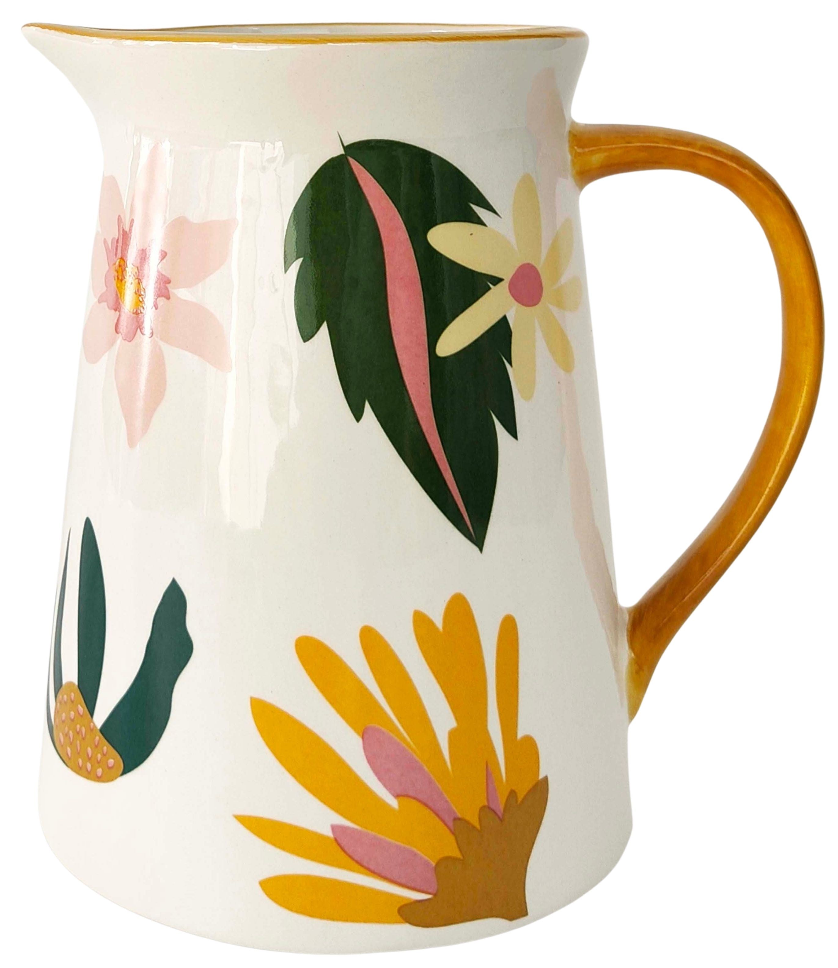 Cassia Floral Ceramic Jug Peach, Green & White 15cm H15x16x12cm