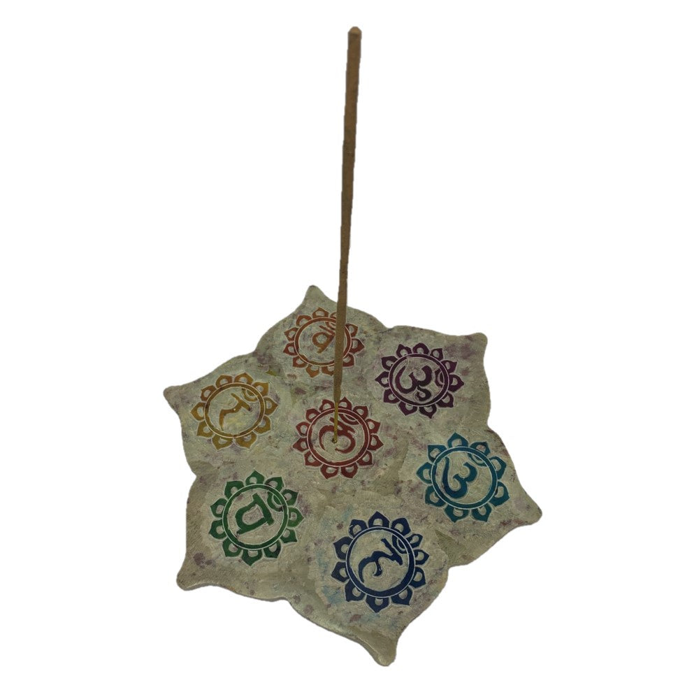 Chakra Lotus Soapstone Incense Holder. Hand crafted in India.