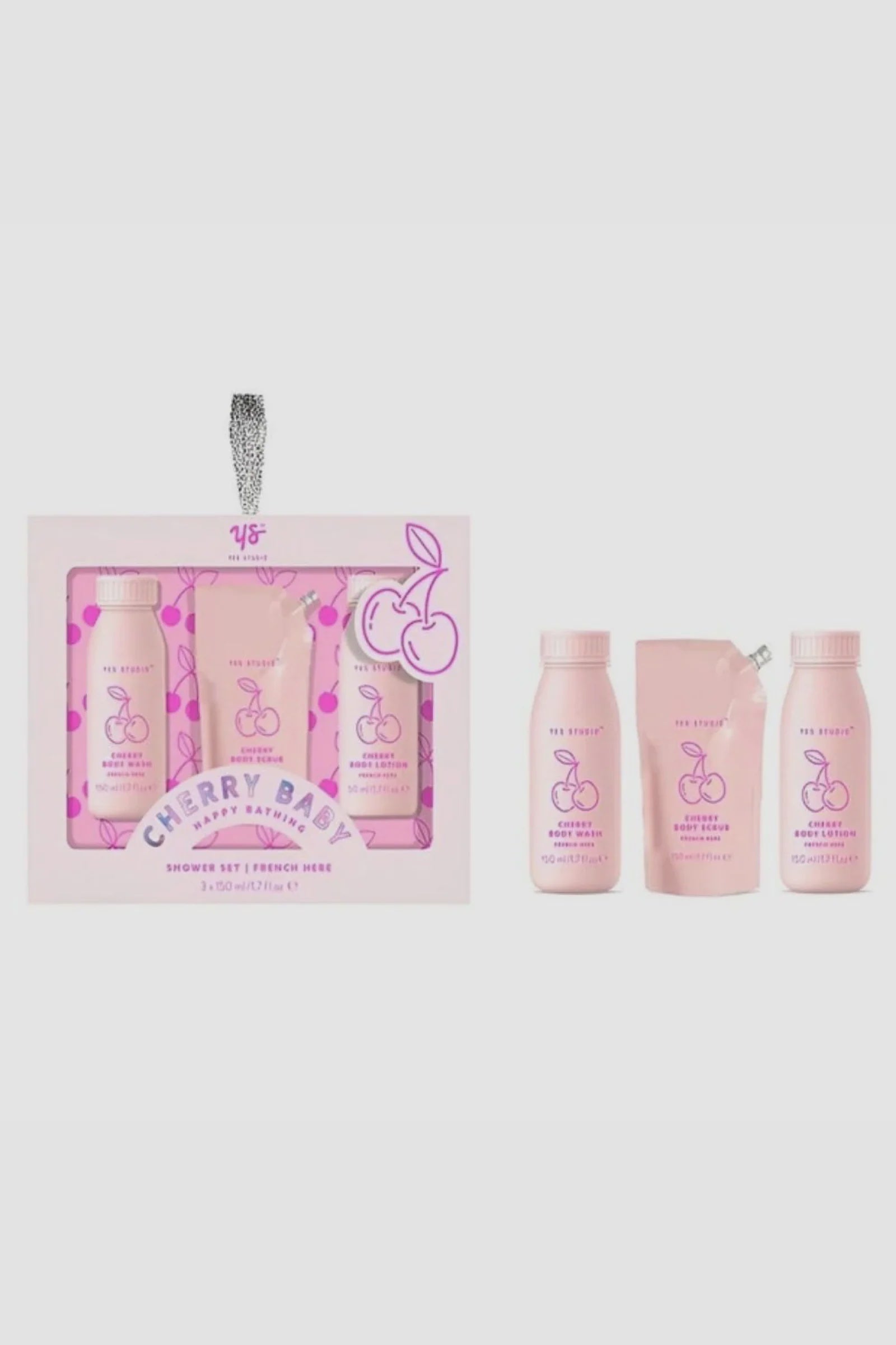 This delightful set includes cherry body wash, body scrub, and body lotion, all infused with the tantalizing essence of ripe cherries.