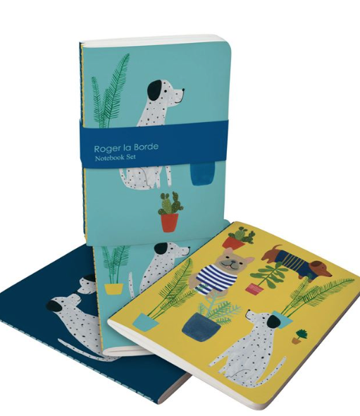 A set of 3 notebooks each with different complementing cover designs and presented with a book band. Each notebook has 64 pages alternating ruled and blank. Printed on paper from managed forests and using vegetable based inks.