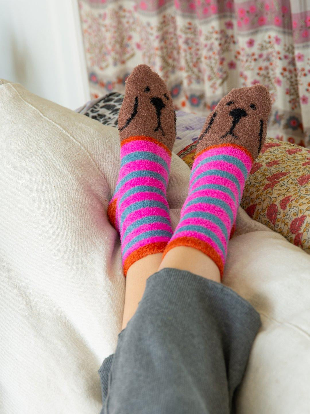 Cozy Sock Pink Blue Dog