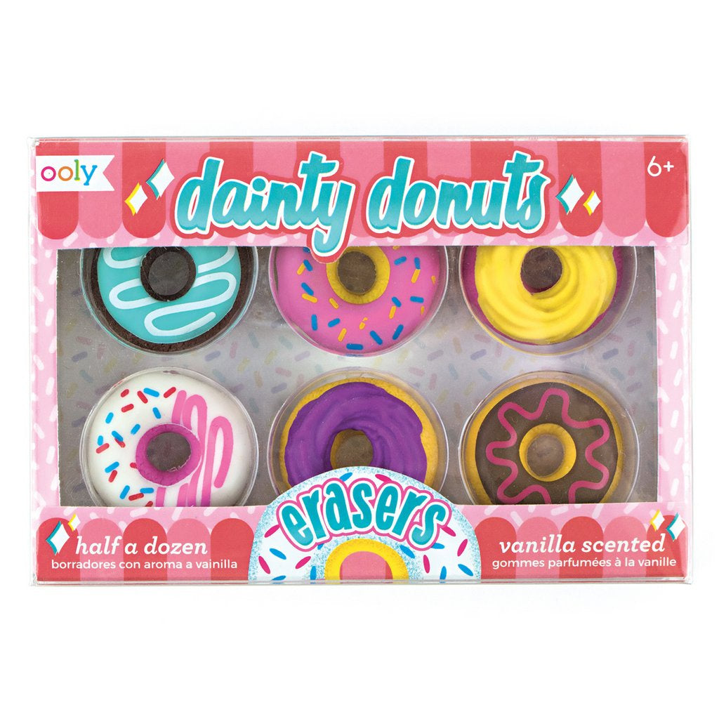Erase in style with Dainty Donuts Pencil Erasers. This cute eraser set comes with half a dozen donut erasers that will make your pencil made mistakes disappear in a sweet looking way. Dainty Donuts are scented erasers too; they smell like sweet vanilla. This pencil eraser set is sure to make your day at school, home or work way sweeter too.