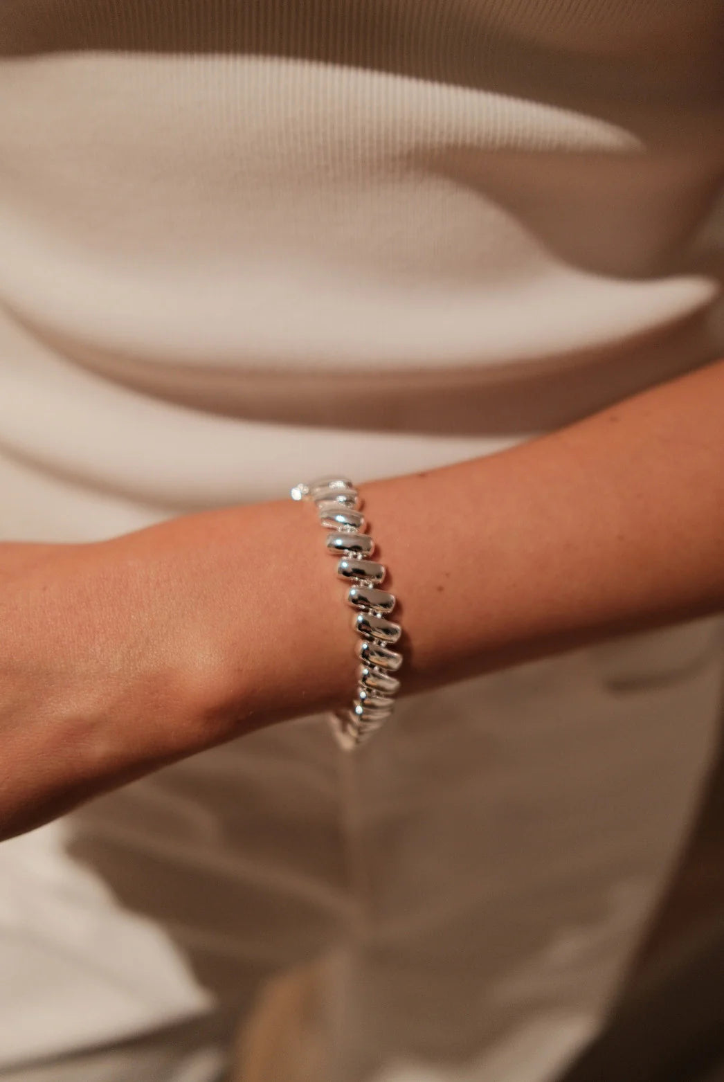 Bold and contemporary, theEmerson Bracelet is designed to make a statement. Featuring high-shine rounded links with a sculptural, domed finish, this piece adds instant impact to any look. Its structured silhouette and polished gold plating make it the perfect bracelet to wear solo or layered for a modern, stacked effect. A true showstopper that balances elegance with edge.
