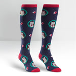 It is common knowledge that owls are the smarties of the bird kingdom. And they won't let you forget it, either: their wisdom is surpassed only by their pretension. But owls have a secret: they can't read Human languages. Sure, owls keep up appearances by burying their beaks in books, but nobody has published a book in Owl for thousands of years. For those of us who can read, these knee highs are perfect for wearing to the library, a lecture, or lounging around the house with a book. 53% cotton, 45% polyester, 2% spandex. Made in Korea. Approximately fits women's shoe 5-10.