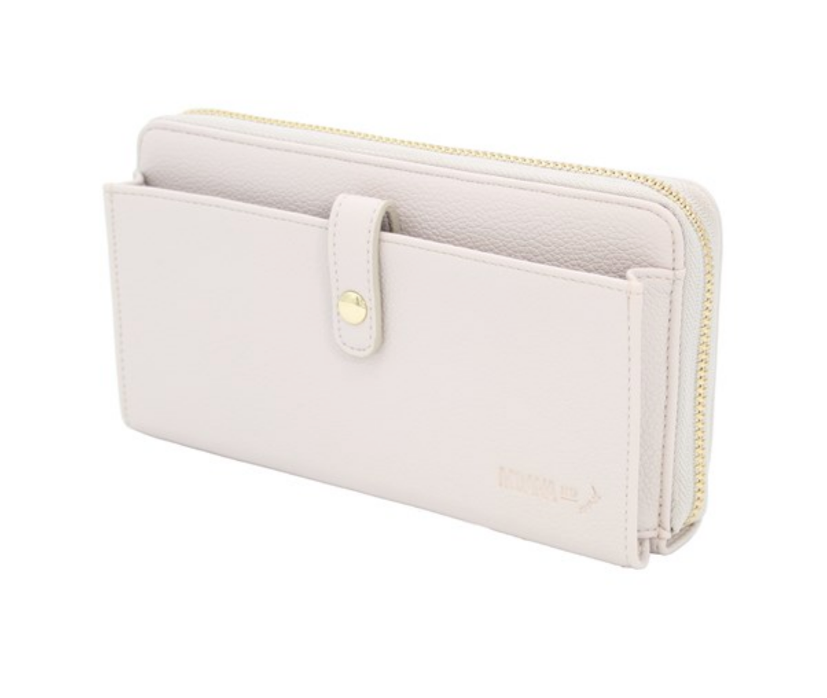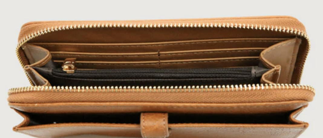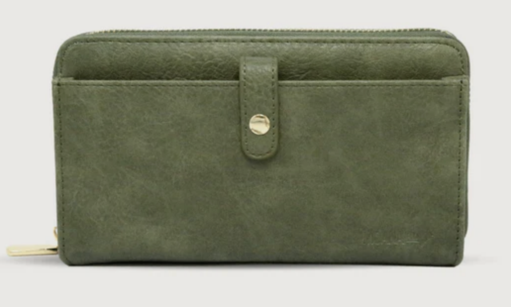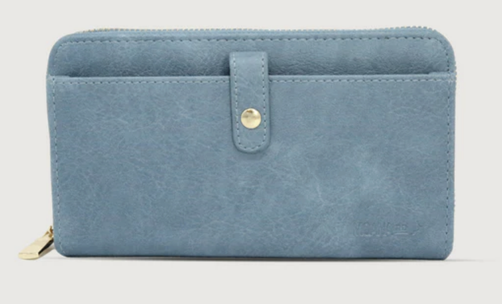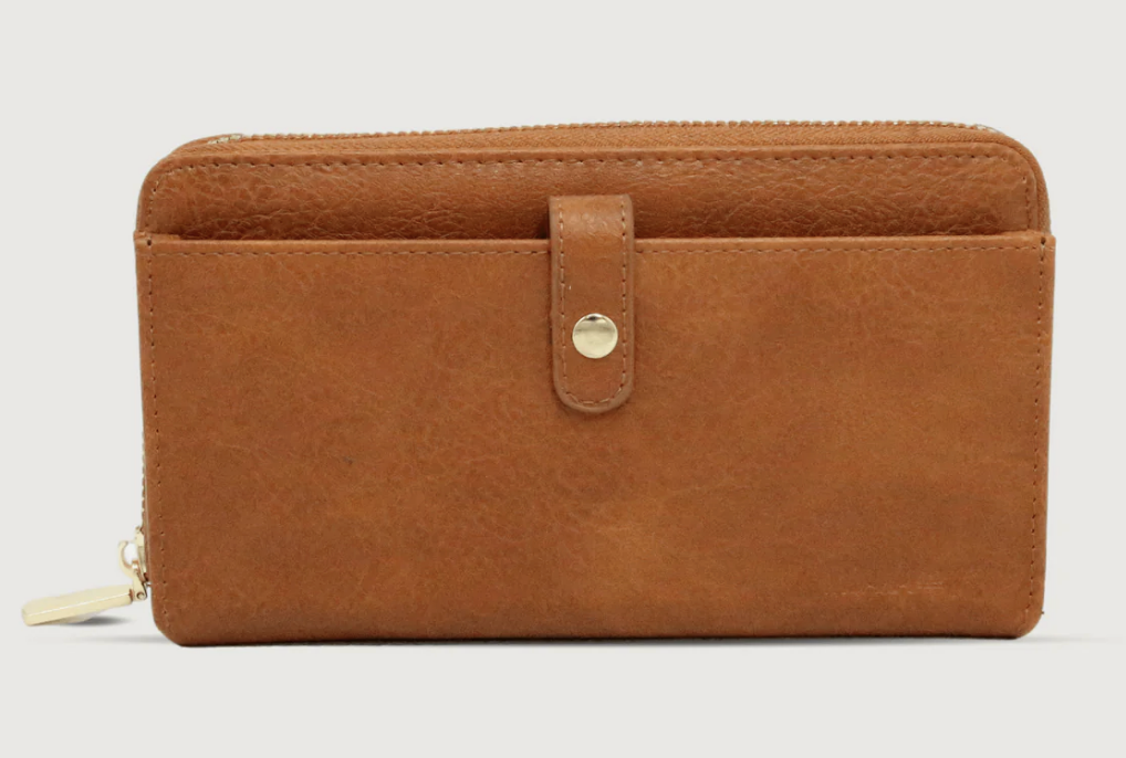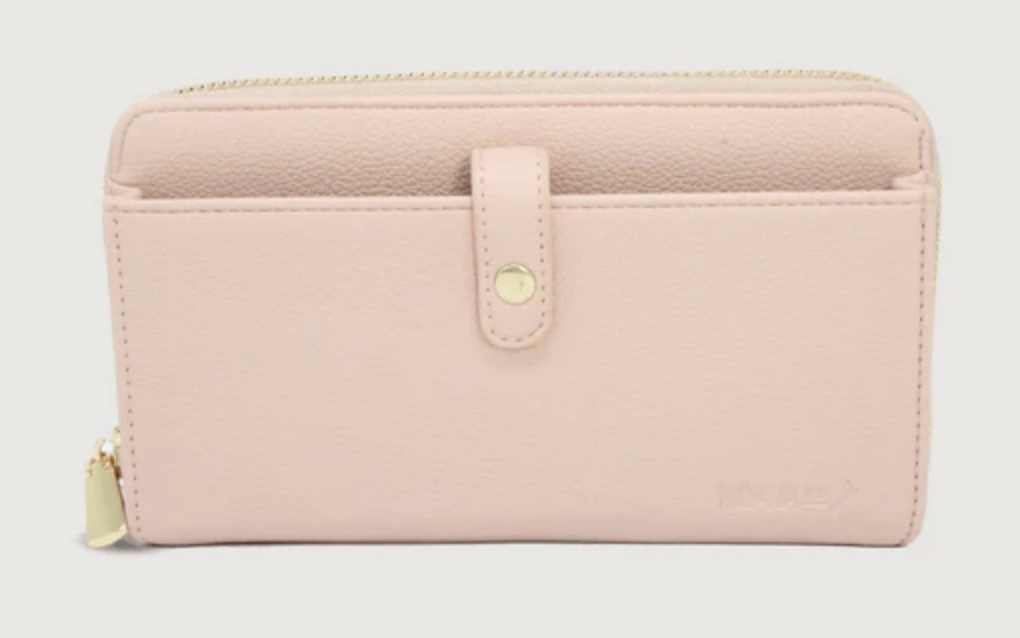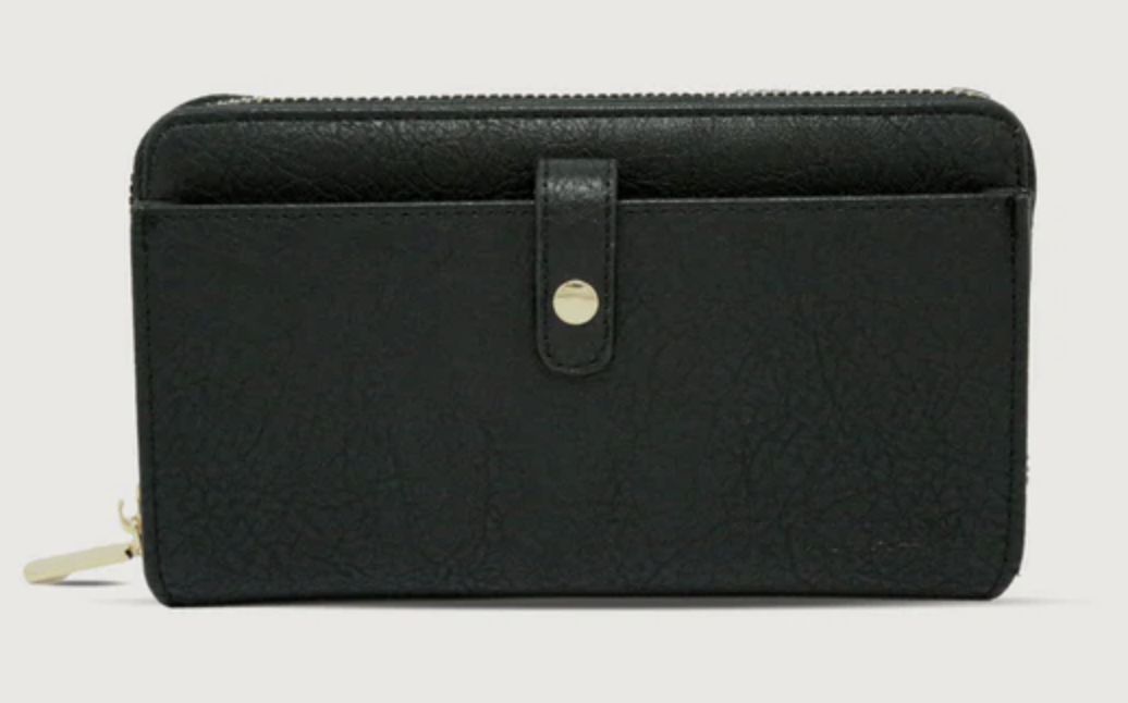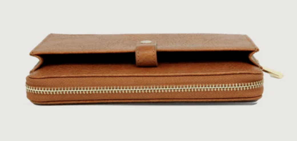 Classic with a modern twist, this wallet features an accessible pocket for your phone with a zippered compartment for cards and cash.