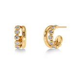 Grace is a line of classic jewellery with a modern twist. An überchic, easy-to-wear line that mixes simplicity with glamour, for those special occasions when only a touch of brilliance will do. Seen here in smaller hoops in 14K gold plating with two bands, one with sparkling stones and one without, that look like two earrings when they are in place.