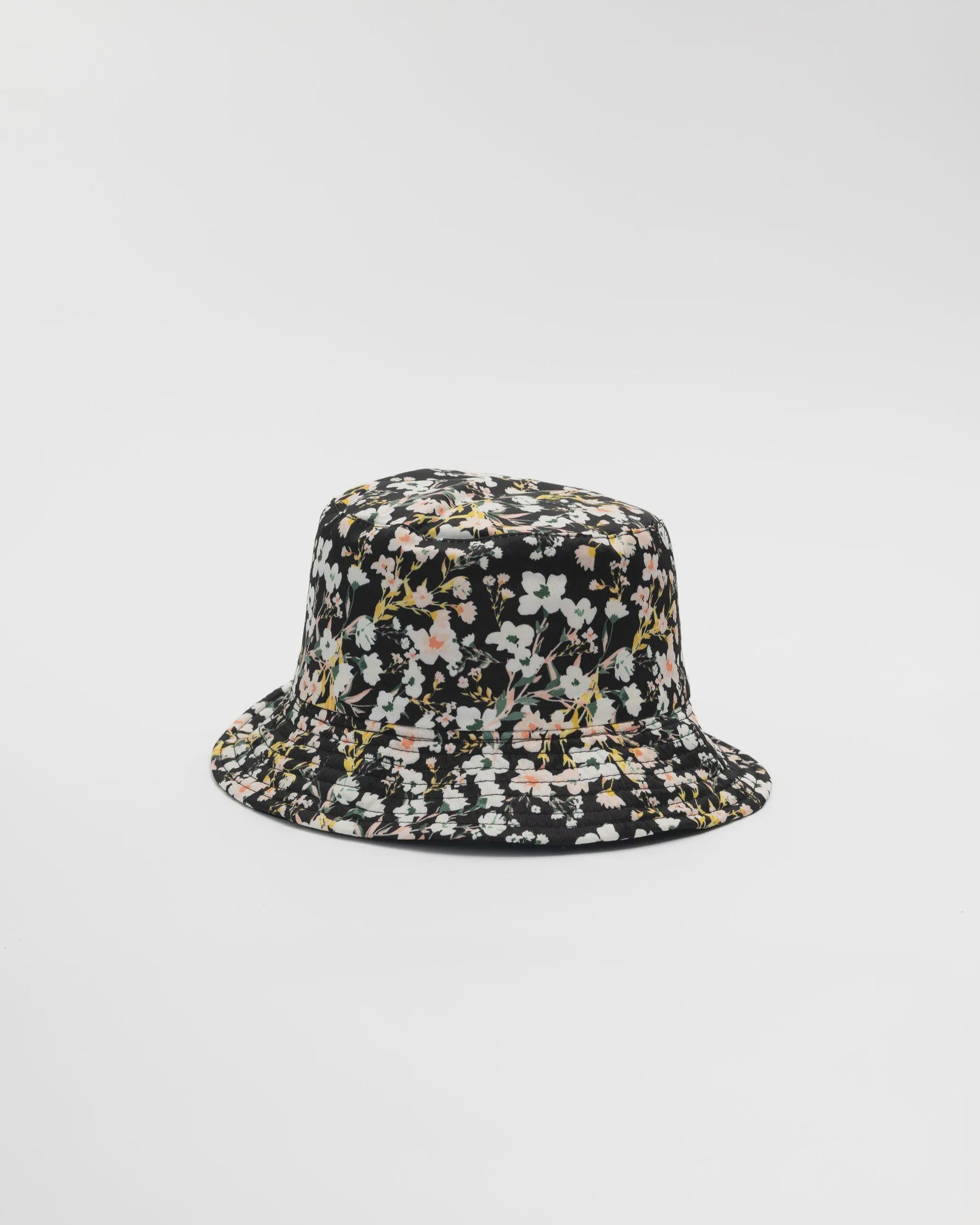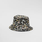 Reversible bucket hat with floral print on one side and black on the reverse side