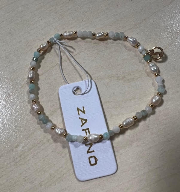 This bracelet features lustrous freshwater pearls combined with Sea-colored semi-precious stone beads, creating a stunning contrast of textures and colours. Crafted with meticulous attention to detail, the Harlow Bracelet showcases the natural beauty of these high-quality materials.