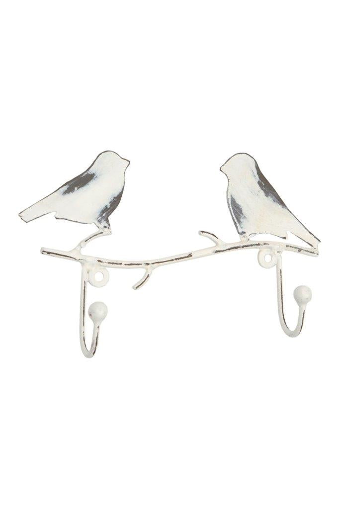 Hook Double Wall Birds Shabby Chic White, with 2 metal hook
