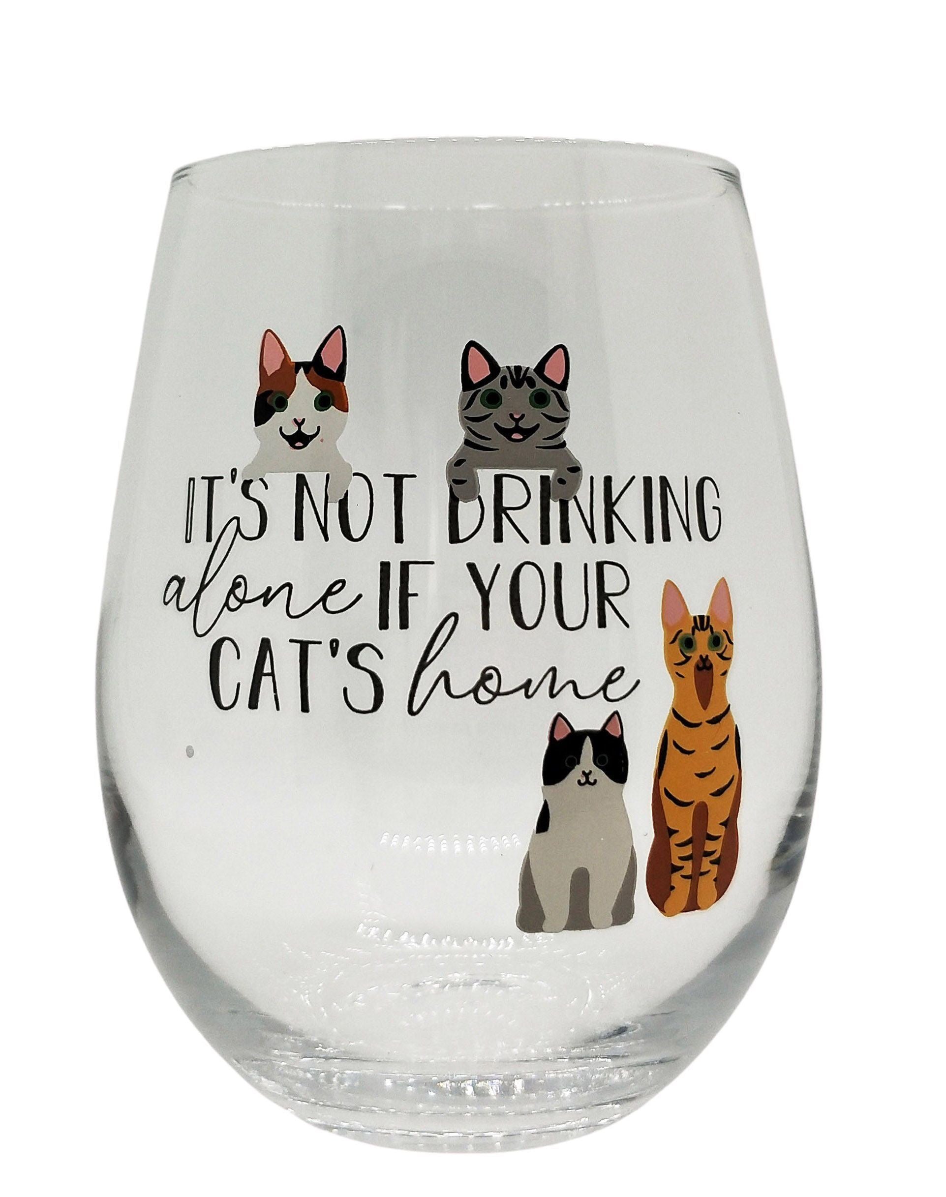 It's Not Drinking Alone If Your Cat's Home Wine Glass Multicoloured 12cm H12x10x10cm