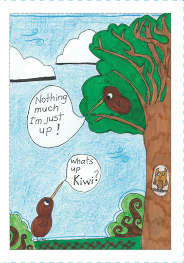 Kiwi card- "Whats up kiwi". Printed professionally on nice card stock, A6 with envelope in clear bag. Hand drawn by Sophie aged 9 in Wanaka NZ