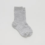 Bunny - Light grey marle zig zag textured merino wool crew socks for babies New Zealand Made, sizes knitted into every pair so no confusion over whose are whose!