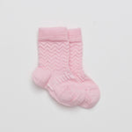 Petal - Pink zigzag knit merino wool crew socks for babies
