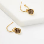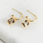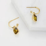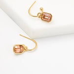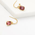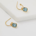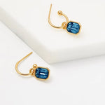 A delicate and stylish accessory that combines a hoop design with a rectangular sea-coloured crystal drop. These earrings exude a sense of modern elegance and understated charm. The delicate hoop adds a touch of sophistication, while the rectangular crystal drop brings a vibrant pop of colour and visual interest.