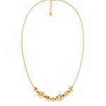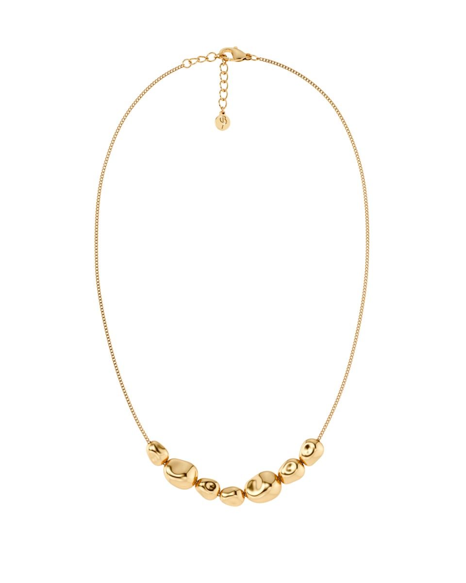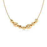 Leora is inspired by beach stones, gently shaped by the endless rhythm of the sea - a harmonious blend of natural contours and refined, minimalist elegance. Seen here in a bold multi-necklace in 14K gold plating, with a faceted curb chain that sweeps through six beautiful irregular-shaped stones in various sizes. Looks great when paired with any earrings from the same line.