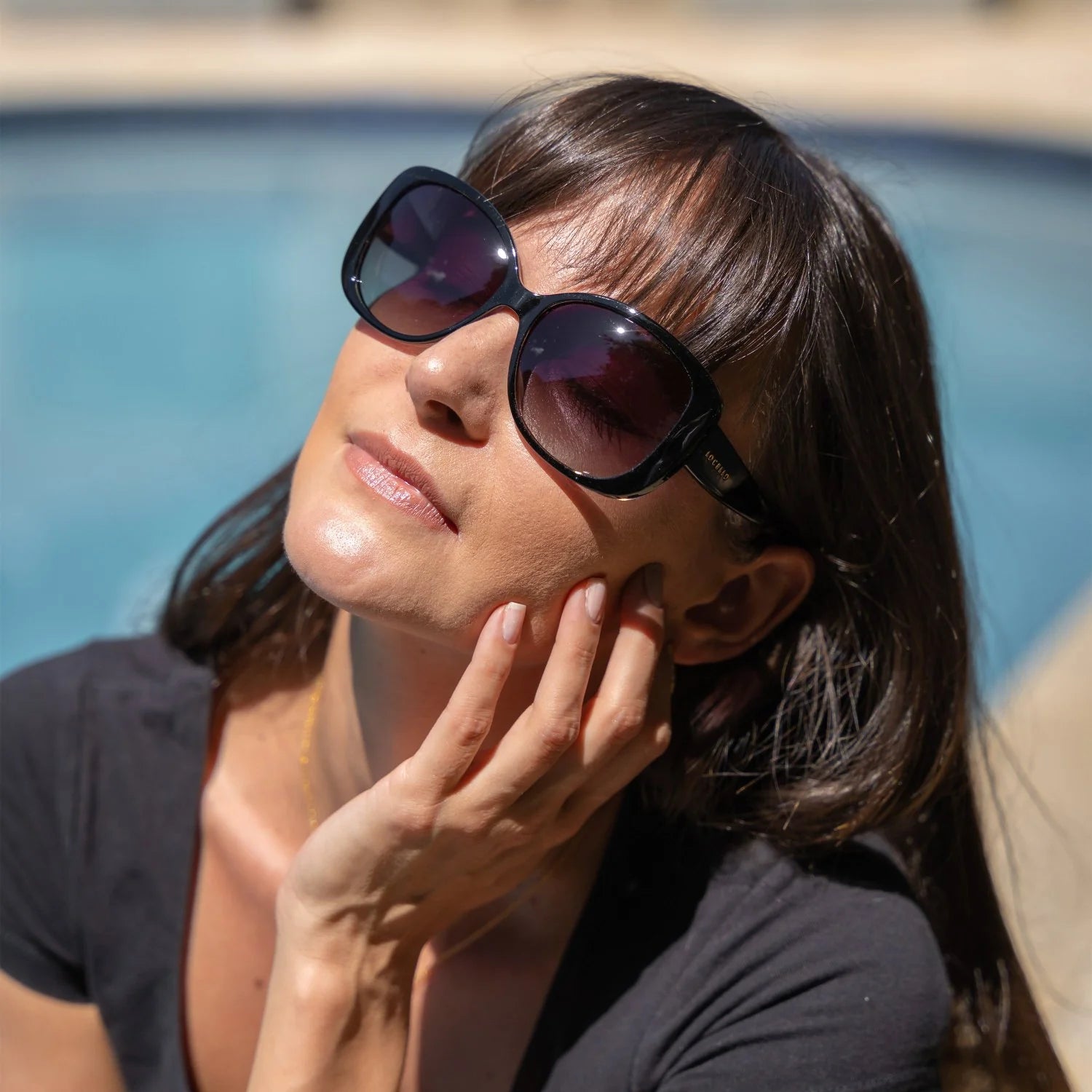 Her classic black frame is a must for every sophisticated wardrobe and her polarised gradient lenses with UV protection means she’ll see you through all kinds of days.
