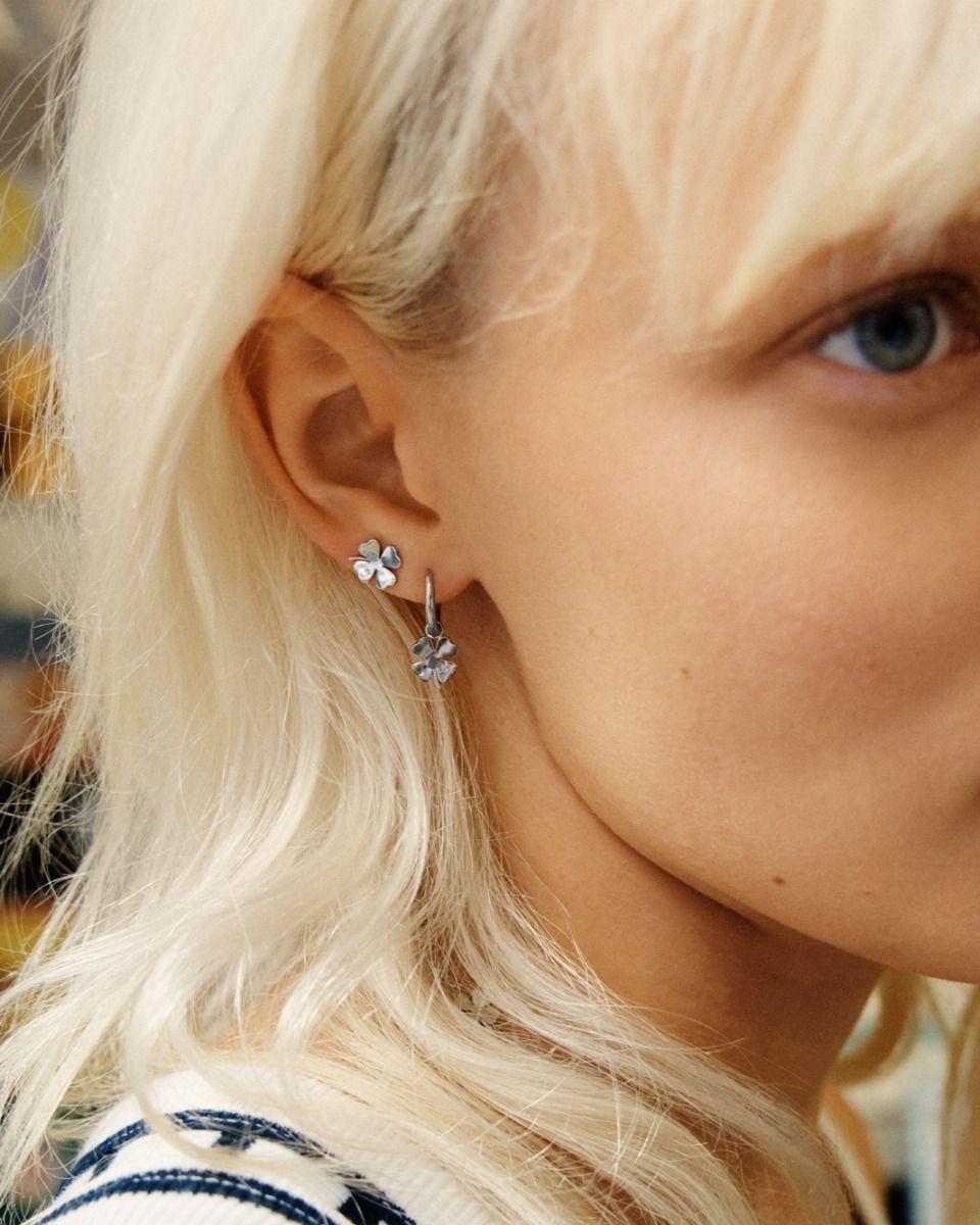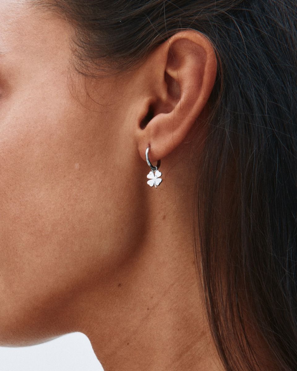 Good fortune will always be on your side in the Lucky Mini line, a mini version of our popular classic line Lucky. Seen here in hoops in shiny stainless steel, with a cute little stylised four-leaf clover, which is removable, creating two earrings in one.