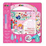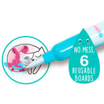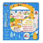 Fill the magic water painting pen with water and use it on the reusable boards to reveal the colour on the page. No mess! Includes 1 magic water painting pen, 6 magical reusable water paintings, games and removable stickers for learning and sticker fun.