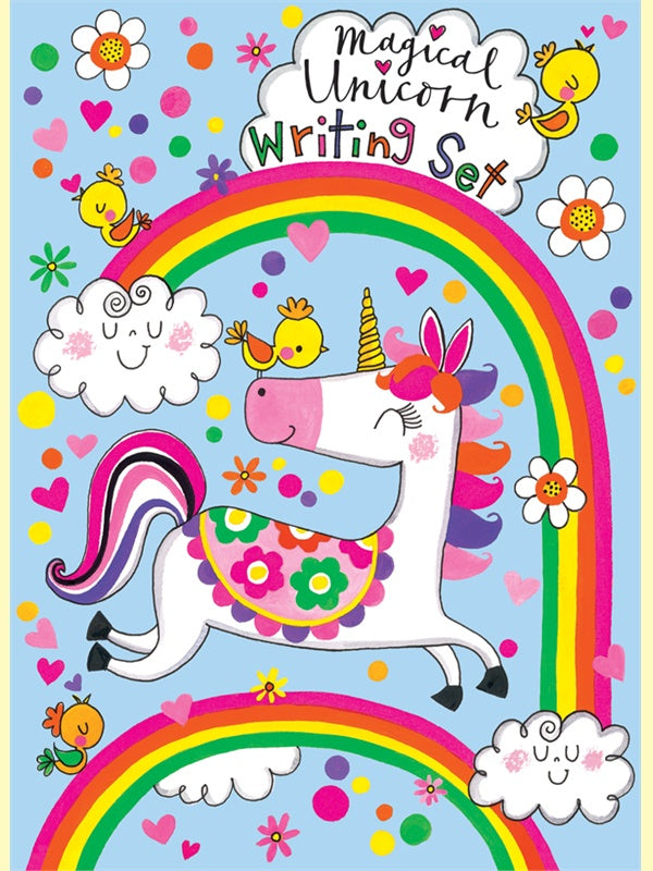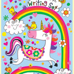 Each Rachel Ellen children’s writing set wallet contains 30 sheets of lined paper, 20 printed envelopes and a sticker sheet. They are open cello packaged so the contents can be seen.