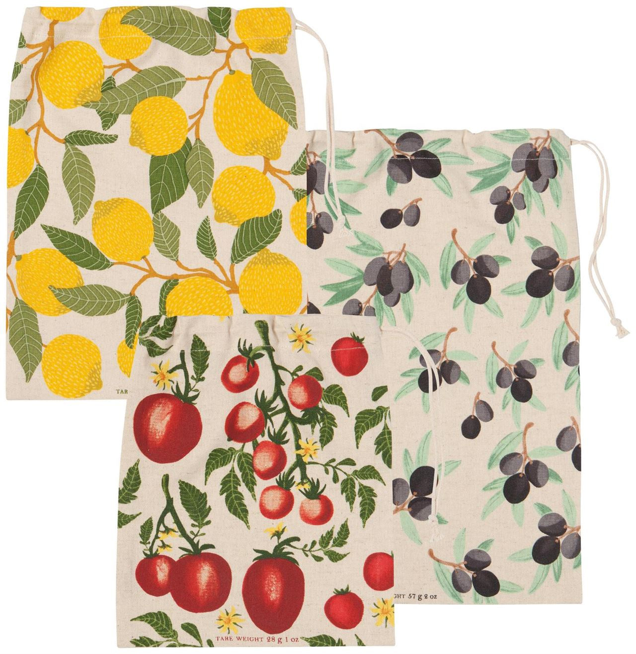 Fill with produce for waste-free grocery shopping. A drawstring keeps contents secure, while a tare-printed tag ensures correct weight.