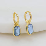 These earrings feature a huggie hoop with a stunning blue crystal that adds a pop of colour and sophistication to any outfit!
