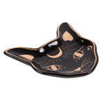This trinket dish comes in the shape of a mystical cat face with gold foil accents. Perfect in size for holding pendulums, rings and other precious trinkets. Made from Ceramic and Dolomite.