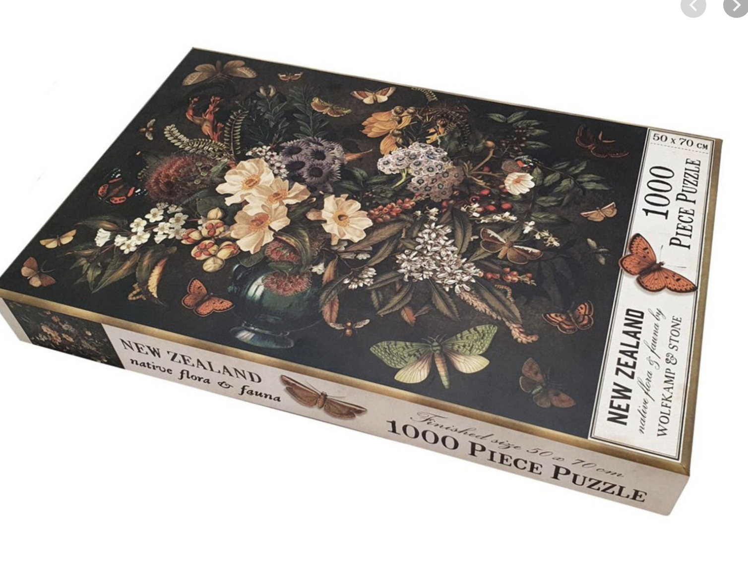 Decoupaged from vintage prints, this 1000-piece puzzle showcases our favourite native flora and fauna. New Zealand native flowers, moths and butterflies rich in detail and colour.