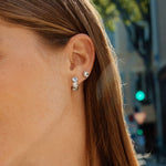 Ocean Gem features organic forms and shimmering details, inspired by the graceful curves of seashells and the sun’s dance across the water's surface. The cute hoops, seen here in shiny stainless steel, feature a hidden screw that ensures they are easy to put on and sit perfectly.