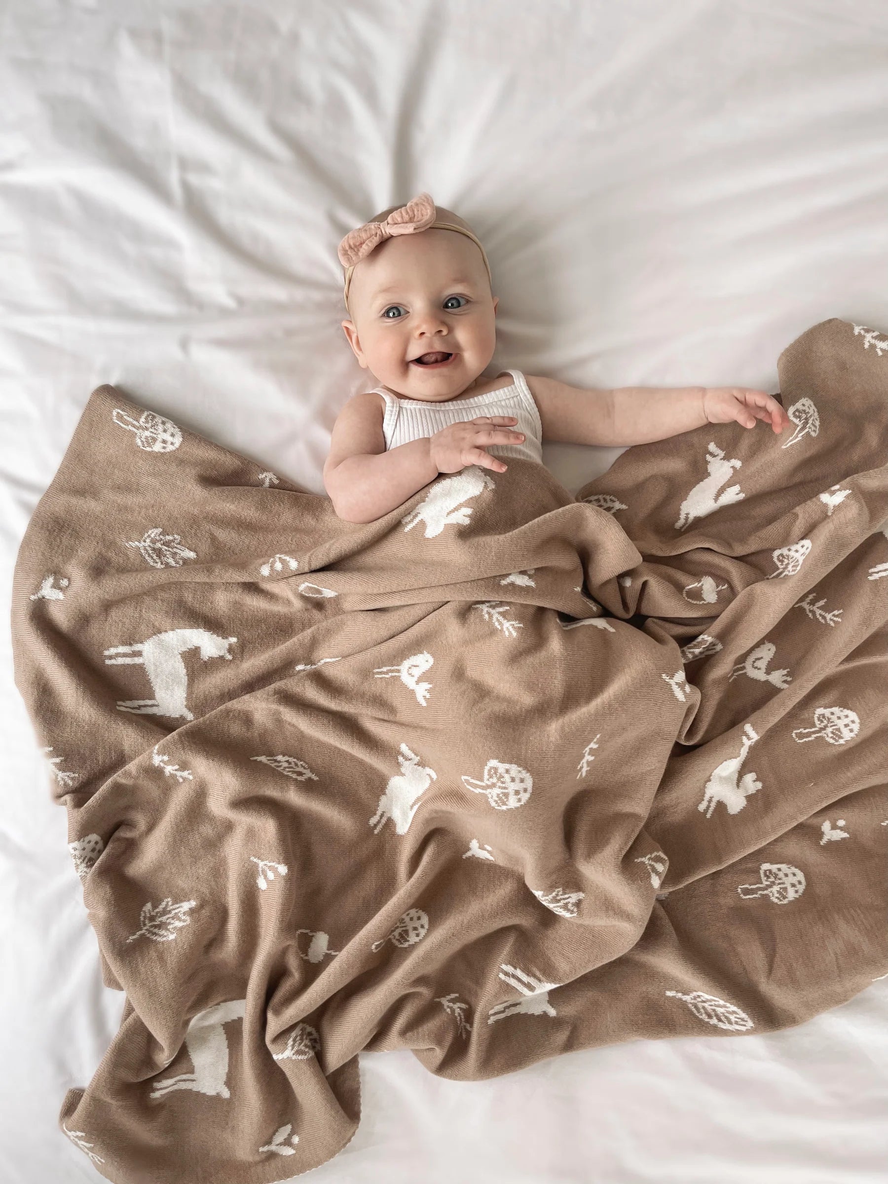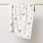 The organic cotton is soft, warm and cuddly. Perfect to use as a pram blanket, a cot layer or as a nursery décor item.