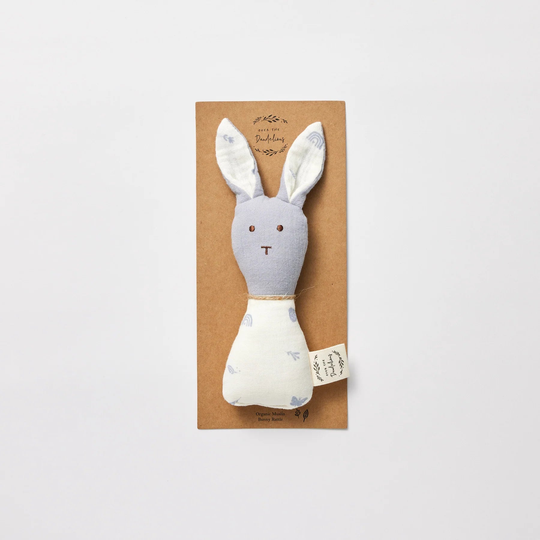 Organic Muslin Bunny Rattle - Enchanted Garden + Frost Blue