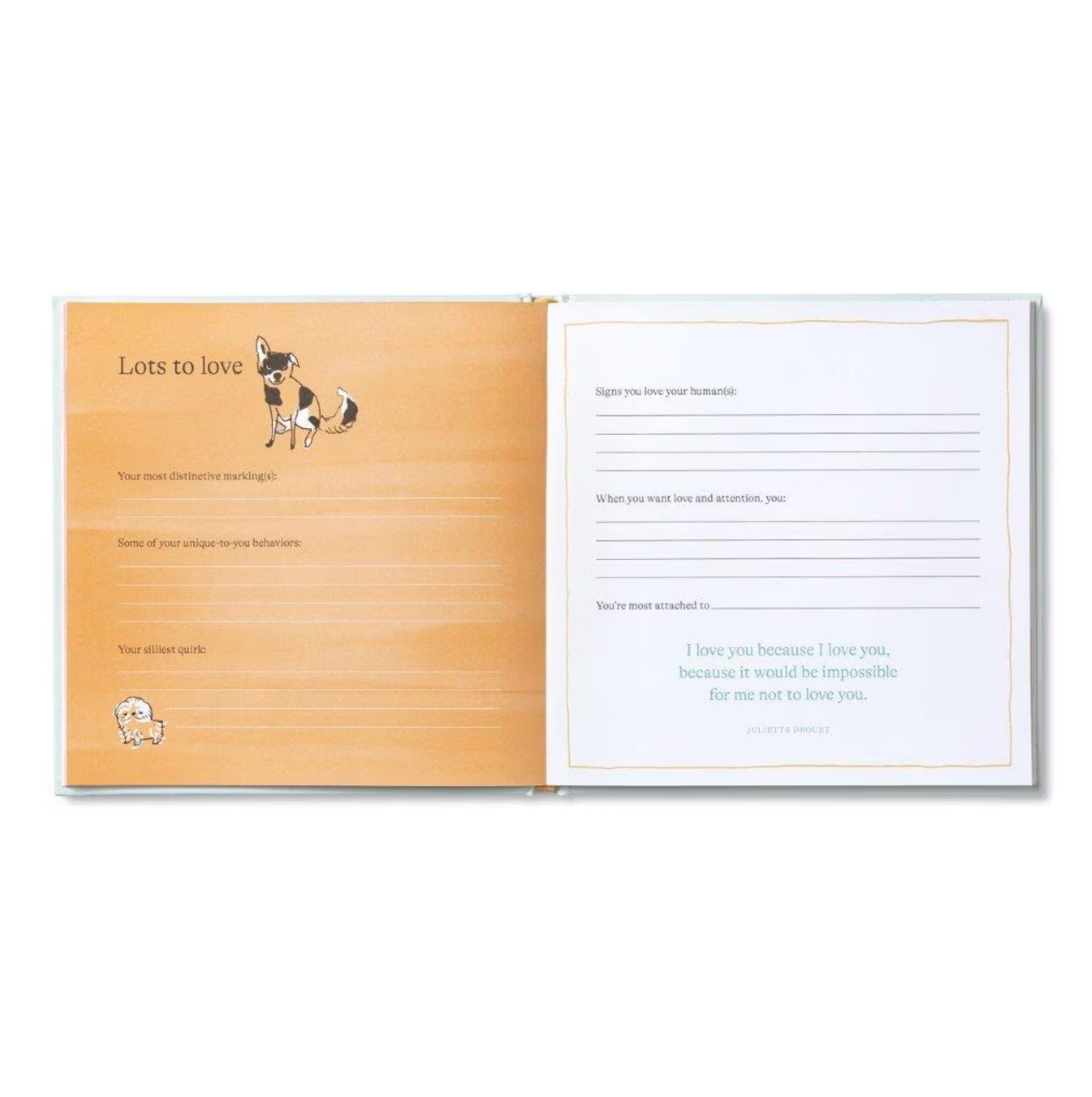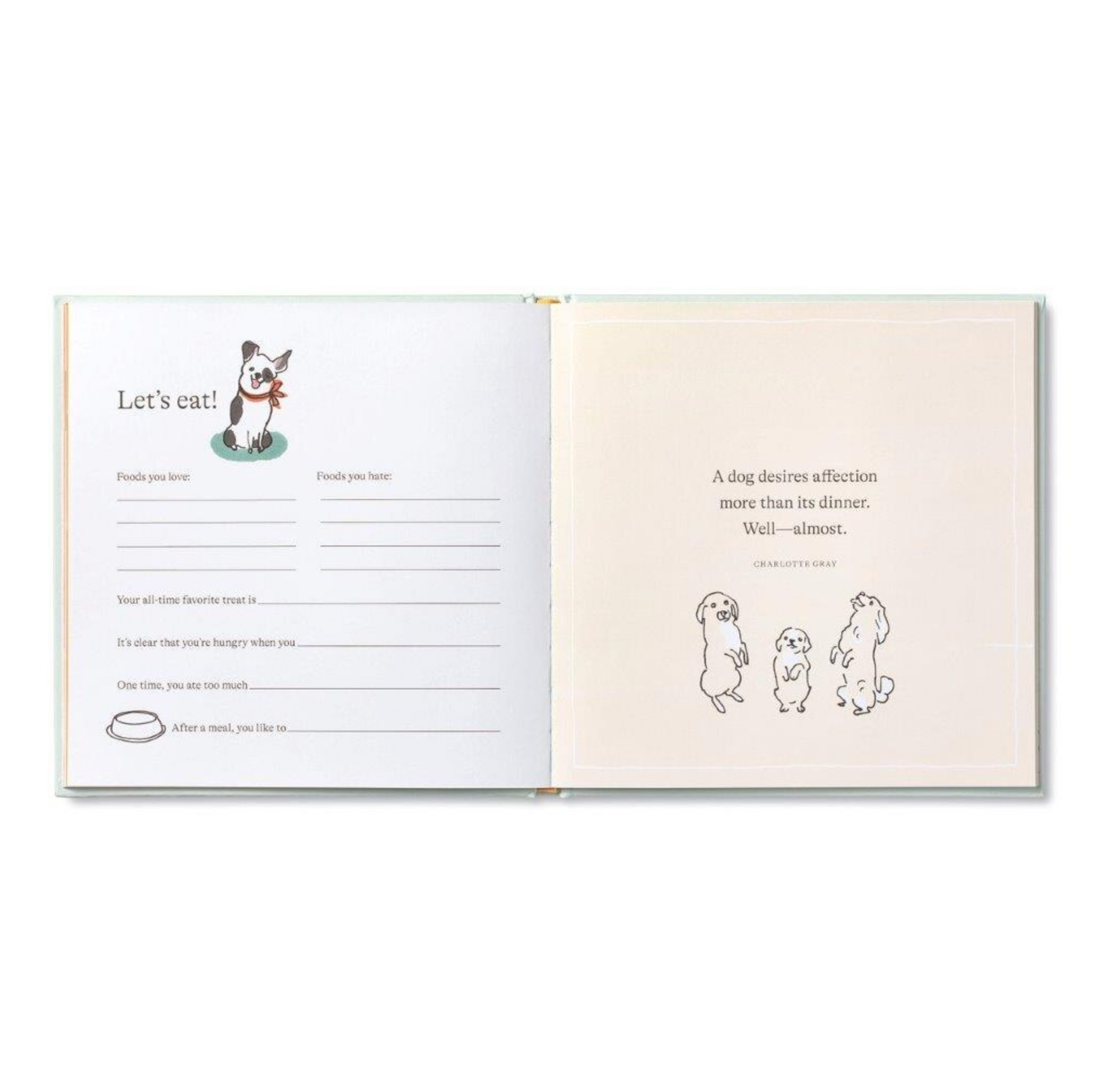 Record the first moments, first snuggles, and first days with your new dog. Inside this elegant keepsake, you’ll find playful and sincere prompts to help you capture the memories of your first year together. Add your photos and reflections to celebrate the personality of your new furry family member.