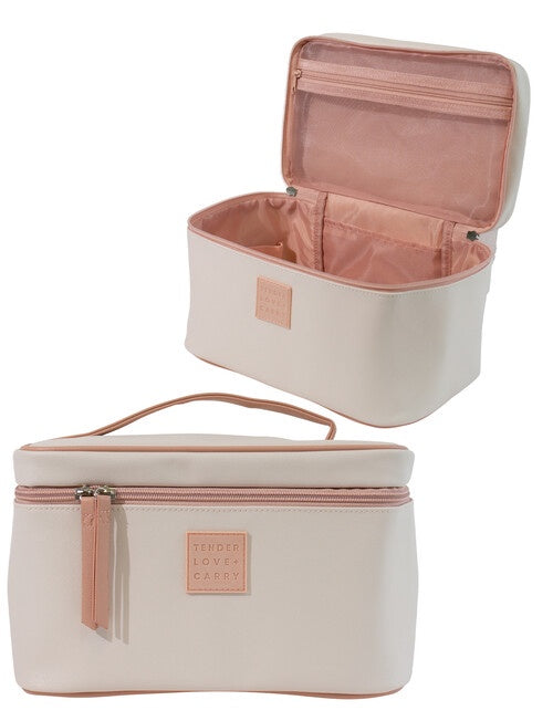 The Travel Vanity is one of the larger bags. It's ideal for storing all your cosmetics and toiletries and features a all around zip so you can open the bag right up.