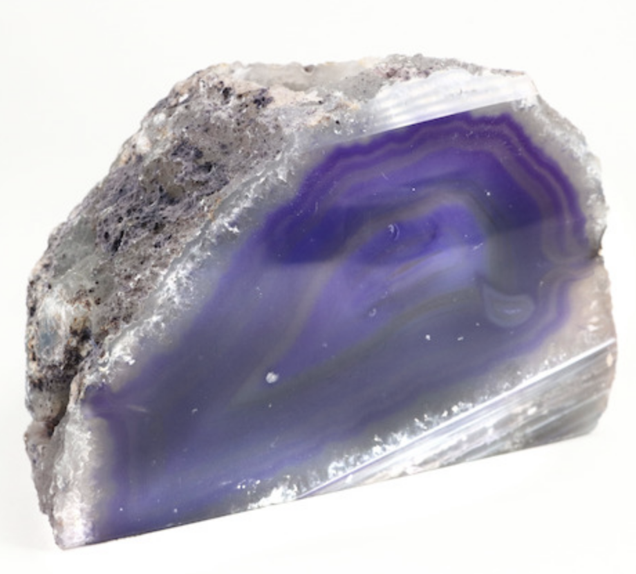 Agate is the name given to numerous varieties of banded Chalcedony, a mineral of the Quartz family. Its name comes from the Achetes River in Sicily, where Agates were first found. Agate is often dyed to achieve their beautiful colours. Agate is known to help enhance one’s communication as well as their analytical abilities. The believed “grounding energy” of Agate helps to make one feel secure and stable within their home, work and personal environments.