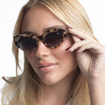 FRAME: Milky Tortoiseshell. LENS: Smoke. 100% UV Protection. Category 3