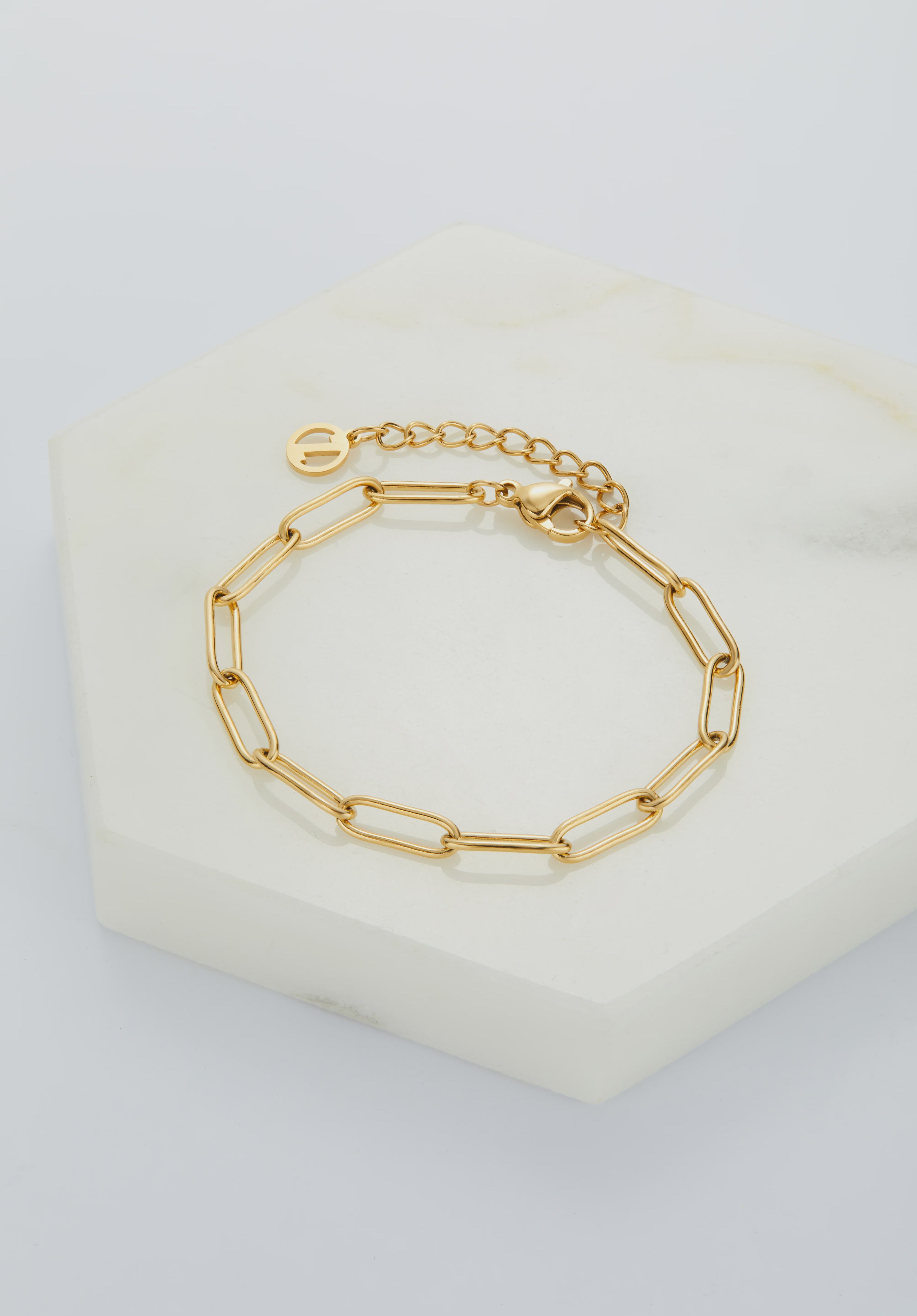 The Ruby Bracelet, a versatile paperclip chain style bracelet designed to hold your favourite charms or to be worn elegantly on its own. Crafted from durable stainless steel, this bracelet is not only stylish but also waterproof, ensuring it retains its brilliance in any condition.