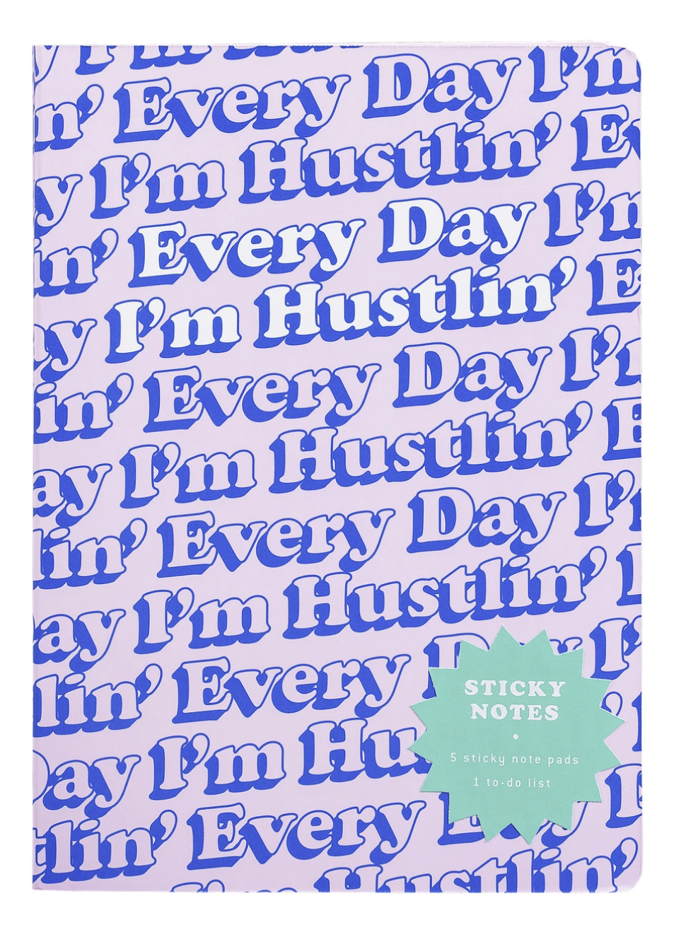 Sit up and take note with Yes Studio's 'Everyday I'm Hustlin' Sticky Notes Book. Five sticky note pads and a Everyday I'm Hustlin memo pad are all packed up in a Every Day I'm Hustlin folder. Each sticky note book is printed with a I'm Buggin, Not to Do List, I Can't Even, I Never Finish Anyth or Tomorrow I Will message. 60 pages.